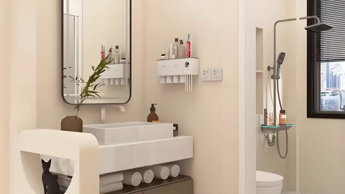 角阀要选纯铜材质搭配陶瓷阀芯的,抗腐蚀、防爆裂,使用寿命更长;花洒主体优先选59A精铜材质,表面镀层要通过24小时盐雾测试,防止使用一段时间后出现掉漆、生锈的情况。浴室柜底部要抬高15-20厘米,避免柜体长期接触地面水汽受潮发霉,毛巾架、置物架等五金件选304不锈钢或太空铝材质,防锈防潮易清洁。