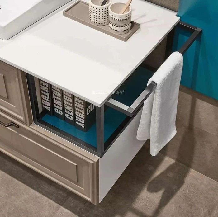 浴室里的使用频率高的毛巾,把它们放在哪里比较好呢?在洗漱台的侧边安装一个毛巾架,不仅大大节省空间,也便于洗完手随手使用,非常实用,也方便晾干。